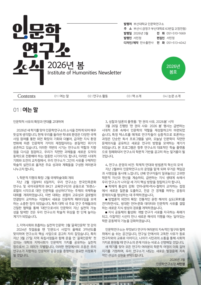 부산대학교 인문학연구소 소식지_2026 봄호